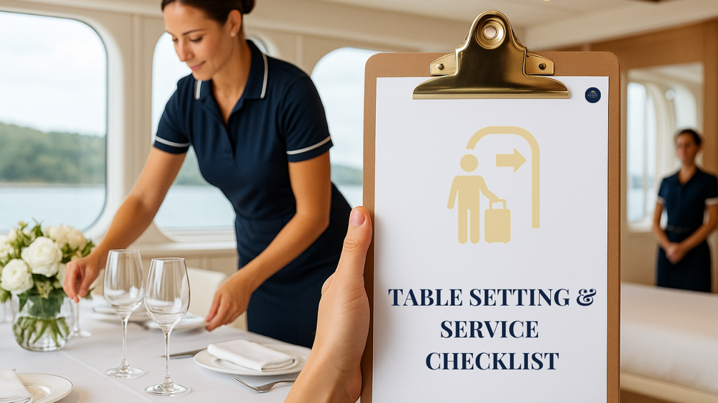 Deliver unforgettable dining experiences with precision and elegance using the Table Setting & Service Checklist — your crew’s step-by-step guide to creating flawless table arrangements and providing world-class service onboard